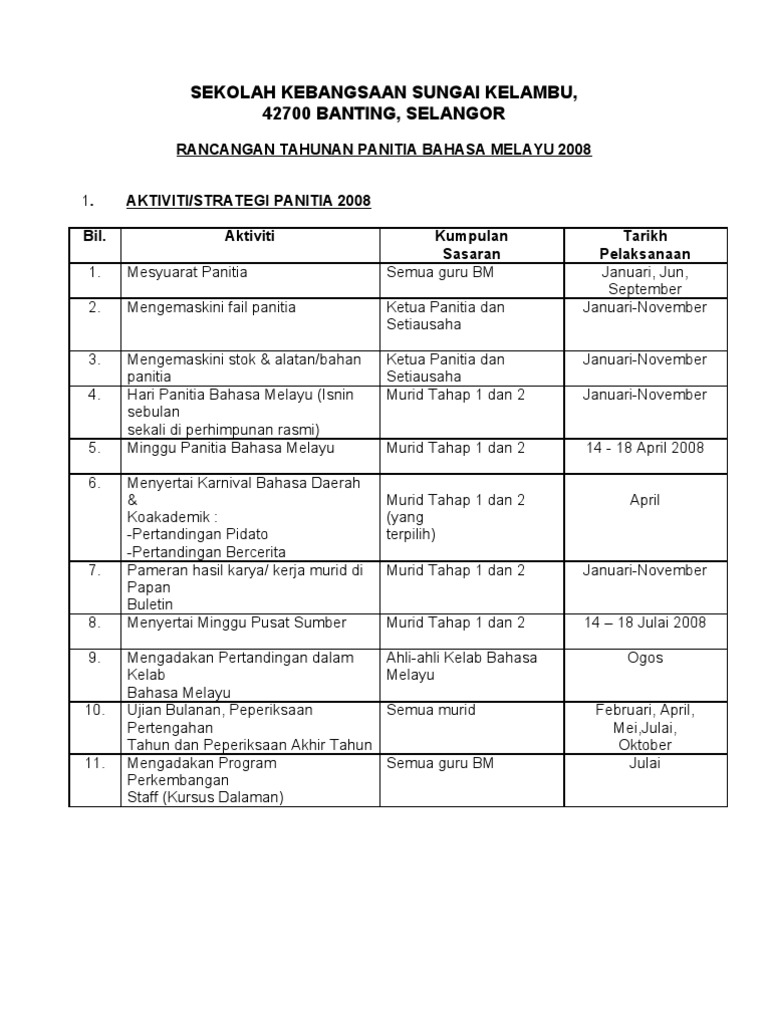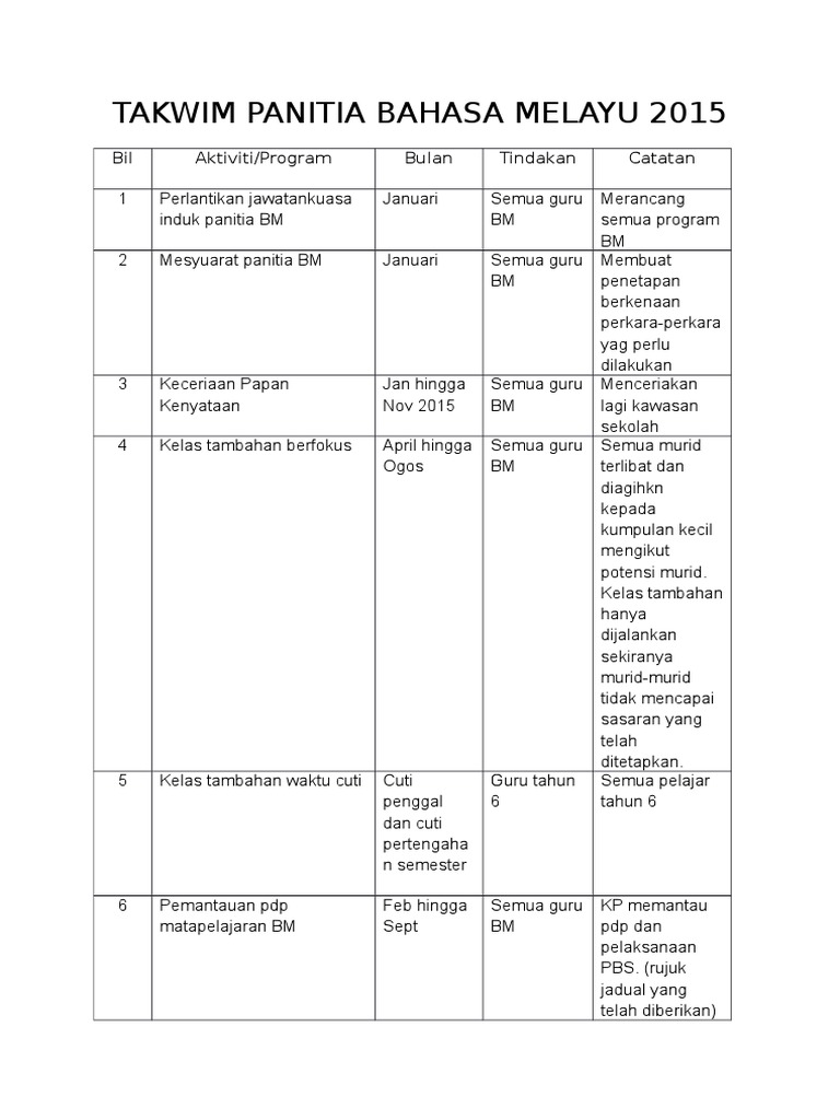 Dokumen Tips Takwim Aktiviti Tahunan Panitia Bahasa Melayu 2014 Pdf